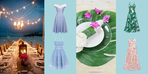 When night falls, it’s time to go to the beach party in a gorgeous and sophisticated dress, like Sky Blue 1950s Off Shoulder Dots Dress and Sky Blue 1950s Strap Polka Dot Swing Dress to perfectly show your graceful femininity. Or wearing a banana leaves printed Green Lace-up Dress or butterfly-printed Light Pink Lace-up Dress to dance with friends as if you are in the natural stage. Trust us, you are the unique one in the spotlight when you are dancing in the crowd. If you’re a cute and lively girl, the Strawberry-printed Pink Halter Dress will instantly make you a sought-after dance partner, sparkling in colorful lights.