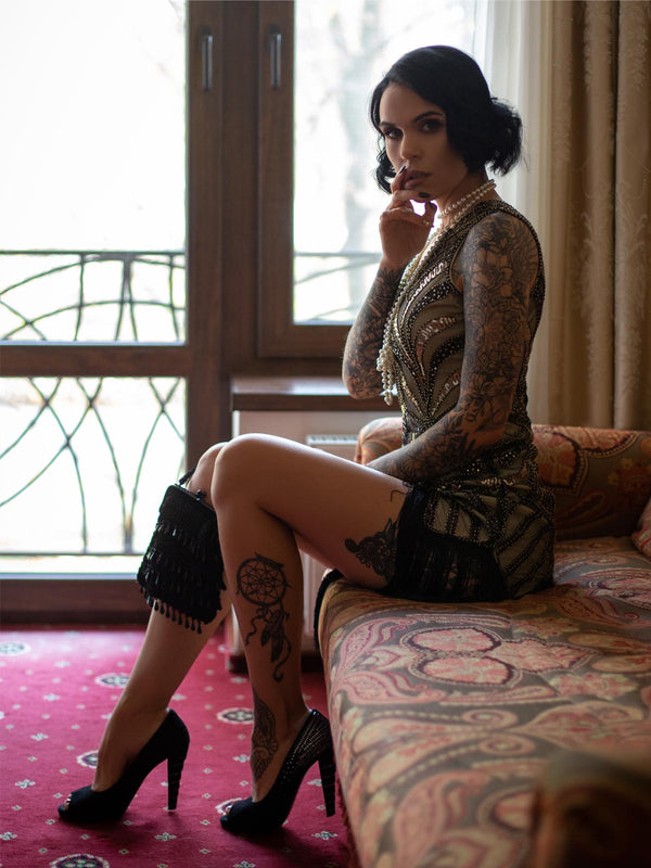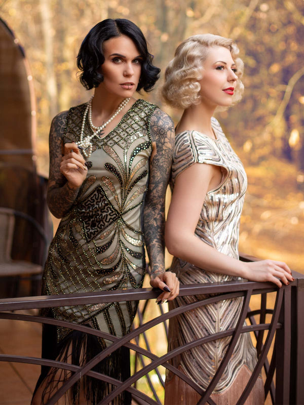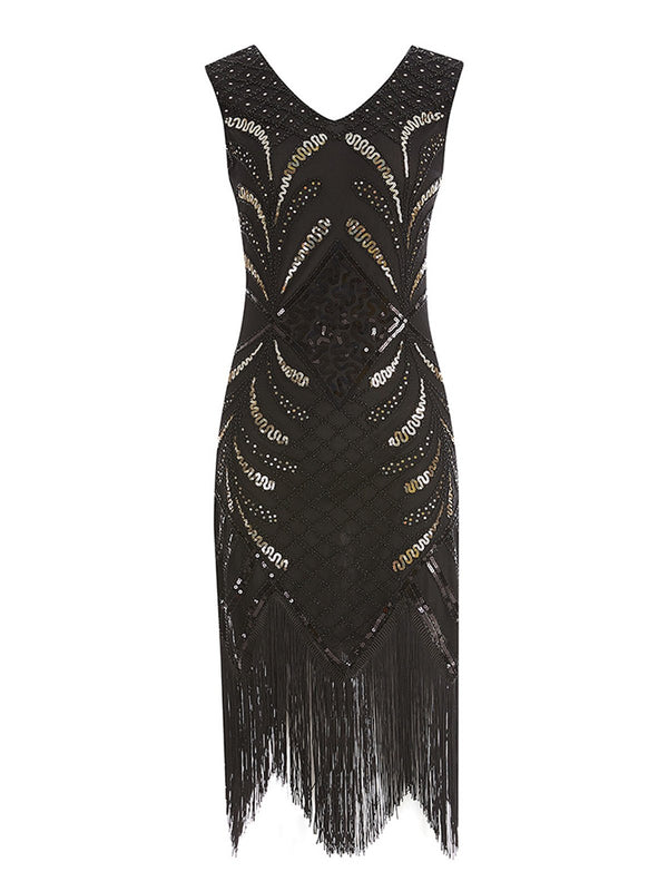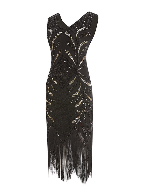 Sparkling, stylish, and spectacular! A breathtaking vintage-inspired dress from Retro Stage. Thanks to swirling sequin patterns, it sparkles and shines all night long. Plus, the sultry V-neck and sleeveless make it even more alluring