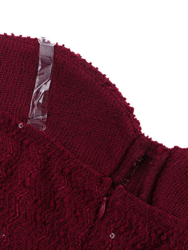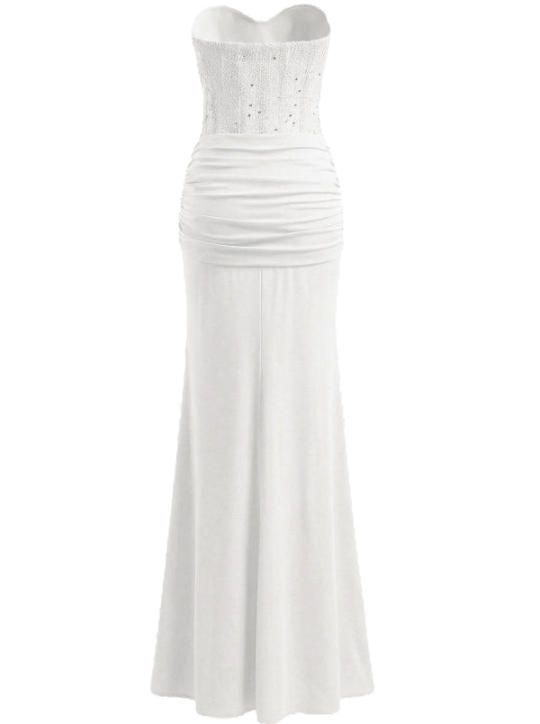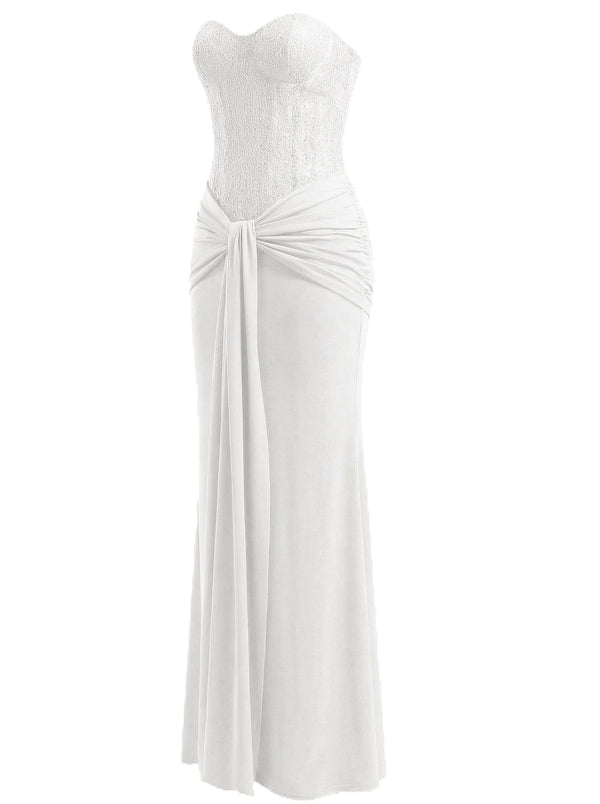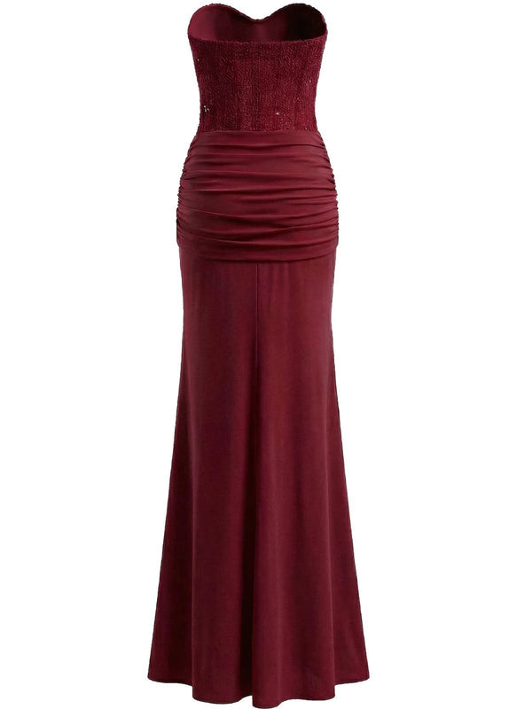 1930s Solid Lace-Up Strapless Maxi Dress