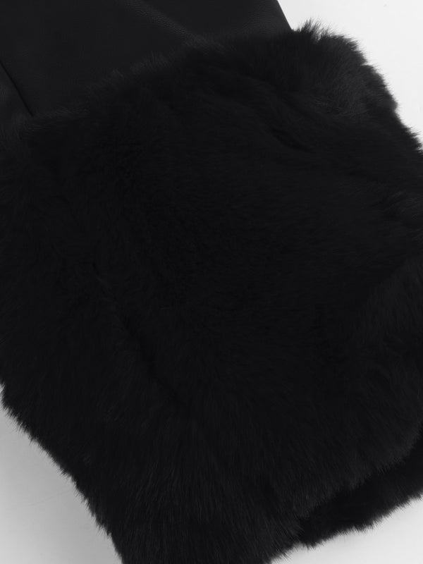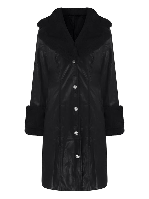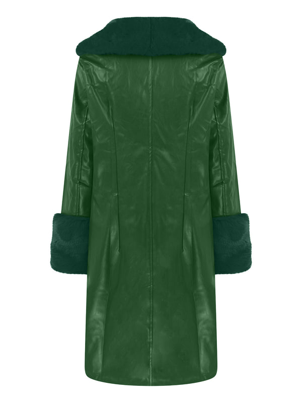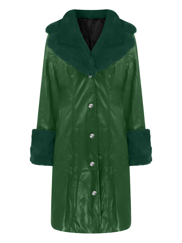 1940s Lapel Fur Collar Zip PU Leather Coat