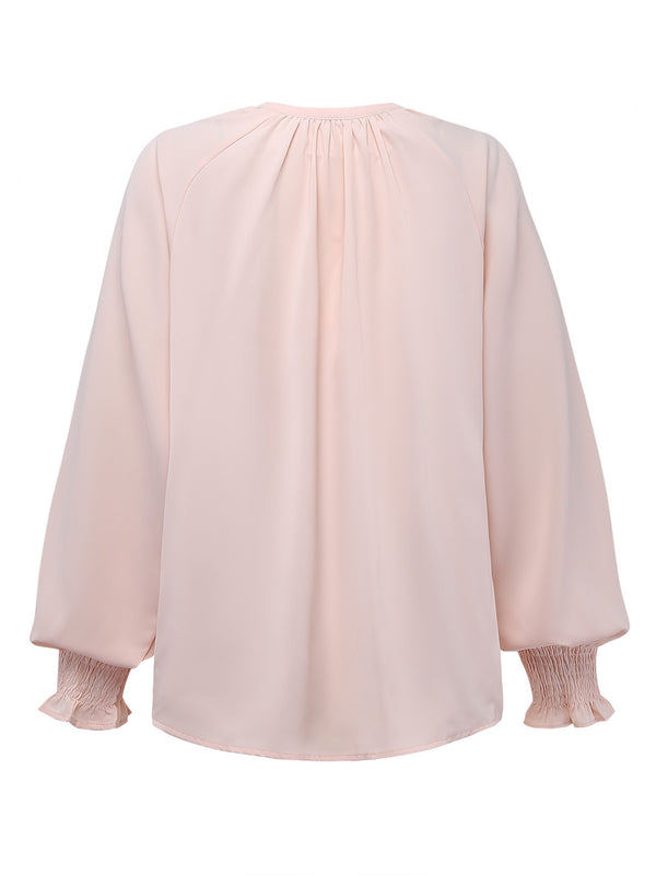 1940s Wrinkle V-Neck Raglan Long Sleeve Blouse