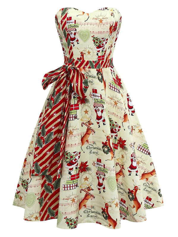 [Pre-Sale] 1950s Christmas Candy Cane Santa Bow Strapless Dress | Retro Stage