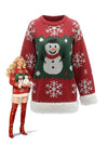 1950s Christmas Snowman Raw Hem Pullover Sweater