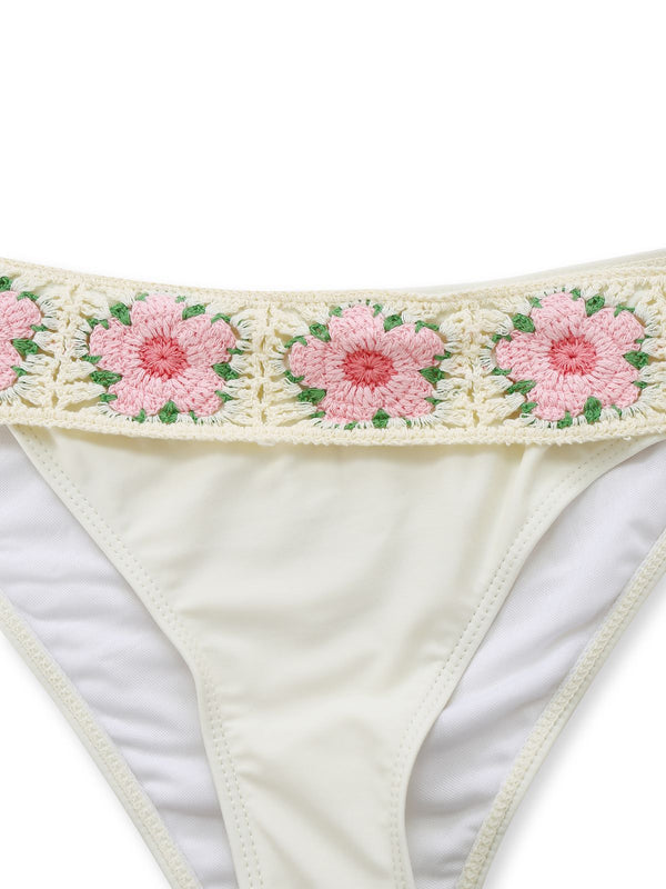 1950s Embroidered Handmade Floral High Waist Bikini Set