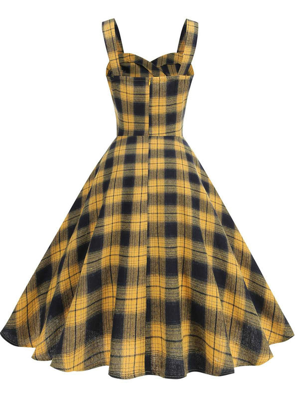1950s Slip V-Neck Plaid Swing Dress | Retro Stage