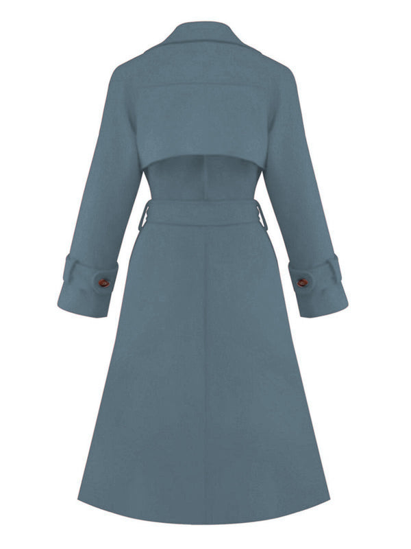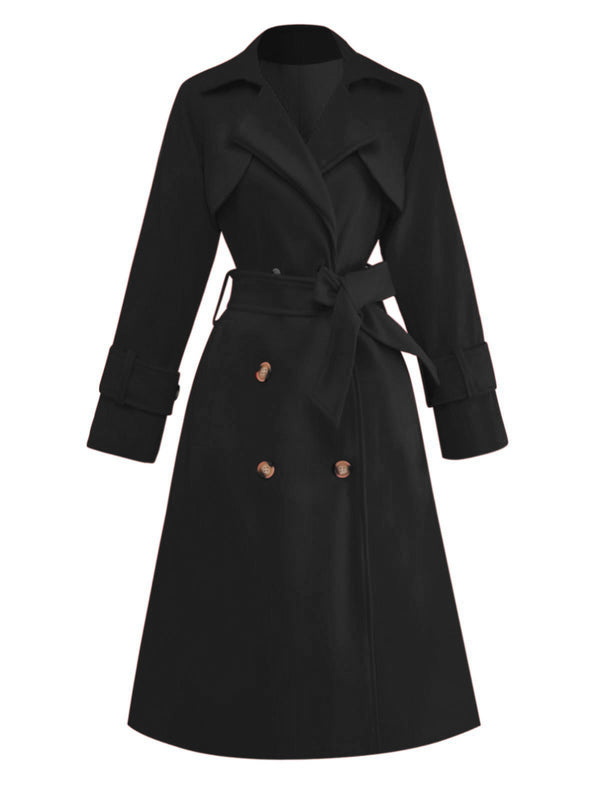 1950s Solid Double-Breasted Lapel Trench Coat | Retro Stage