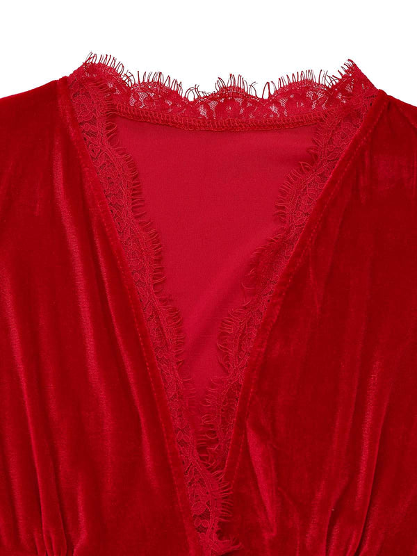 1950s Solid Keyhole High Neck Velvet Jumpsuit