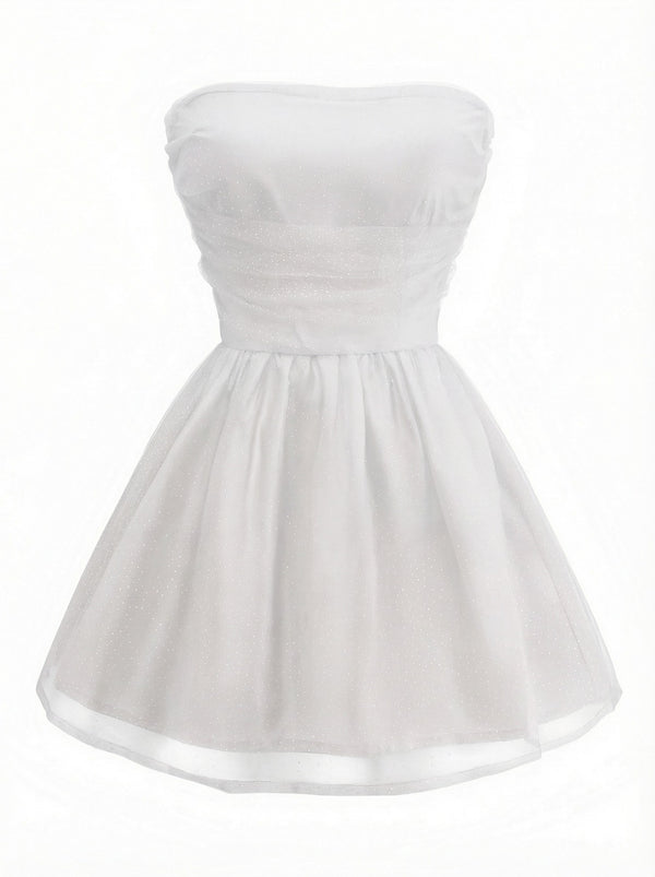 1960s Strapless Glitter Back-Tie Tulle Dress