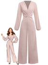 1970s V-Neck Solid Twist Long Sleeve Jumpsuit | Retro Stage