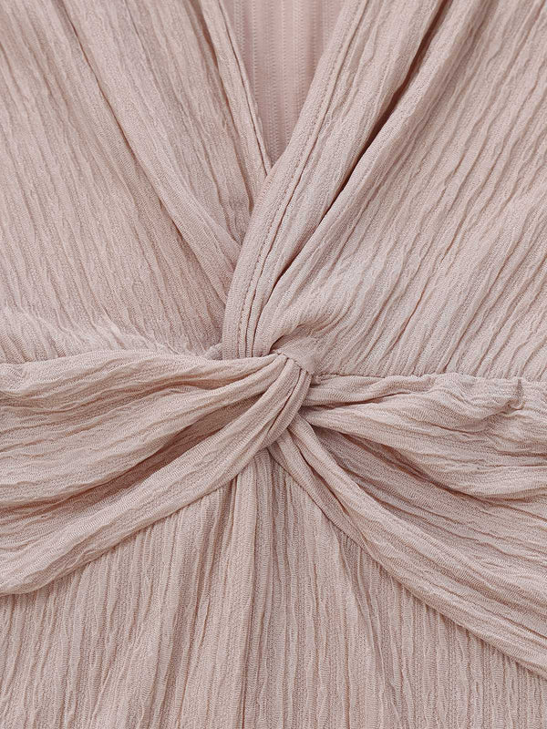 1970s V-Neck Solid Twist Long Sleeve Jumpsuit