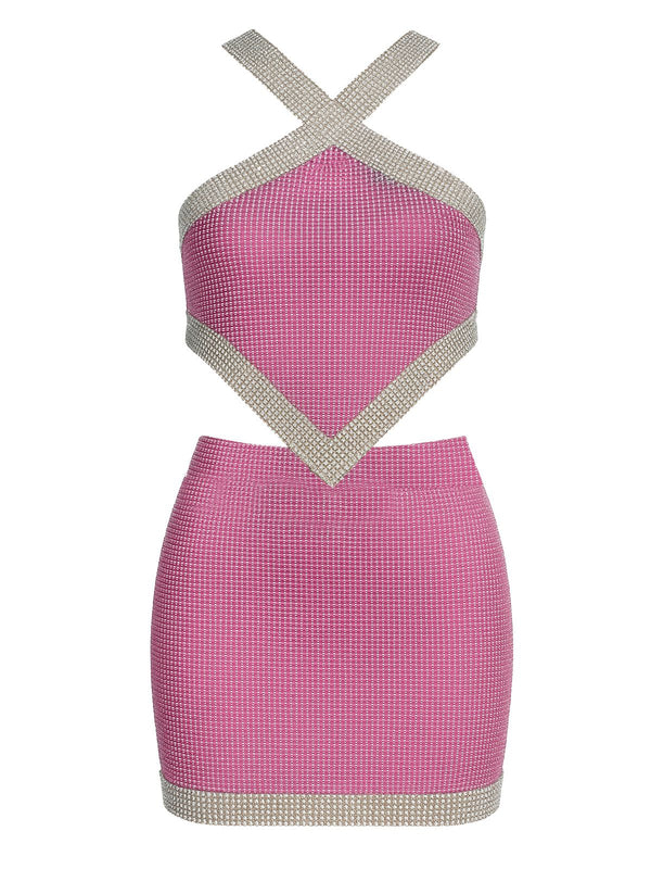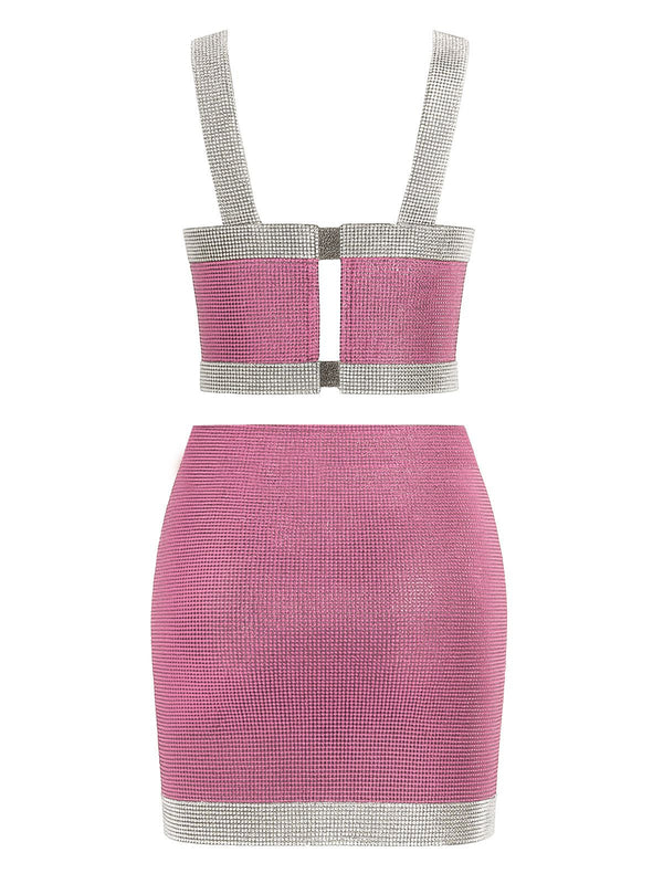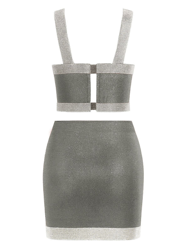 2PCS 1980s Metallic Cross Neck Top & Skirt