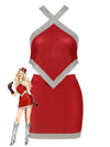2PCS 1980s Metallic Cross Neck Top & Skirt | Retro Stage