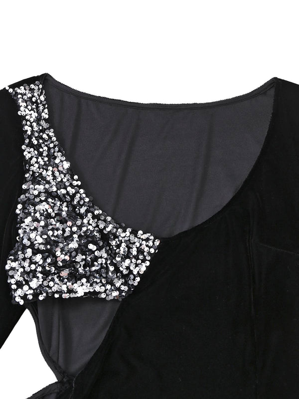 [Pre-Sale] Black 1930s Sequined Velvet Cutout Slit Fishtail Dress | Retro Stage
