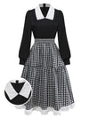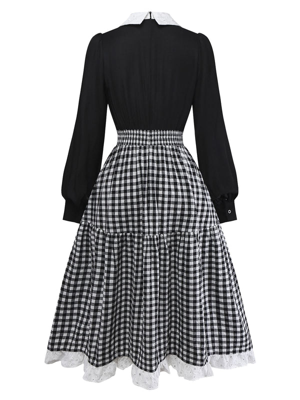 [Pre-Sale] Black 1950s Plaid Patchwork Embroidered Lace Dress | Retro Stage