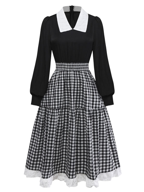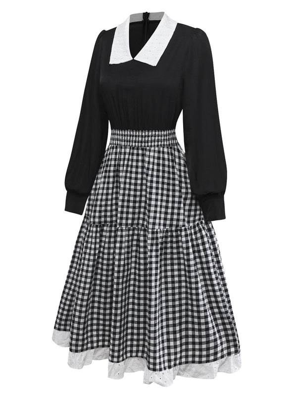 [Pre-Sale] Black 1950s Plaid Patchwork Embroidered Lace Dress