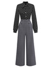 [Pre-Sale] Black 1950s Polka Dot Patchwork Tie Neck Jumpsuit | Retro Stage