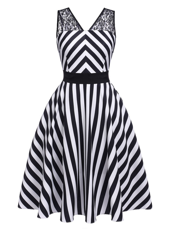 ‍Black 1950s Stripes Lace Swing Dress (86% off) | Retro Stage