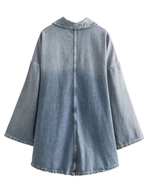 Blue 1970s Loose Lapel Denim Dress | Retro Stage