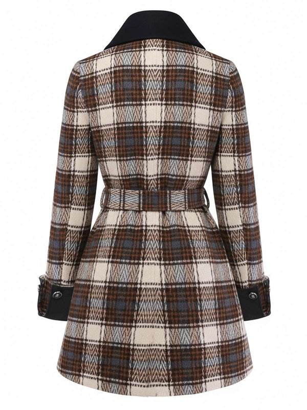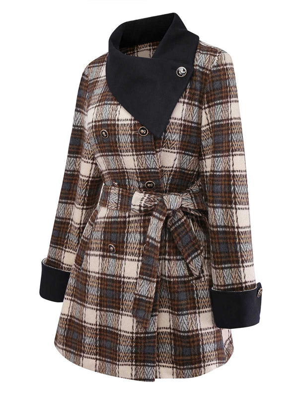 [Pre-Sale] Brown 1940s Cotton Plaid Asymmetrical Lapel Coat | Retro Stage
