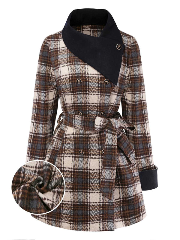 [Pre-Sale] Brown 1940s Cotton Plaid Asymmetrical Lapel Coat