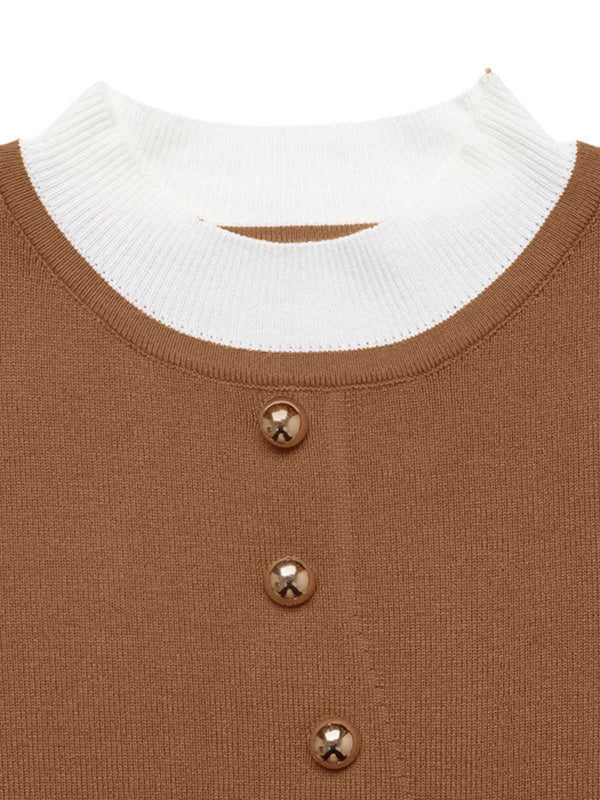 Brown 1970s Irregular Button Patchwork Knit Top | Retro Stage
