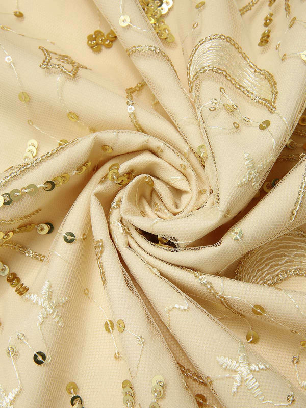[Pre-Sale] Champagne 1920s Firework Star Sequins Mesh Pearl Dress