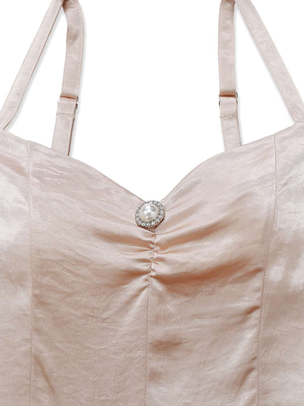 [Pre-Sale] Champagne 1950s Pearlescent Satin Waist Pleated Dress