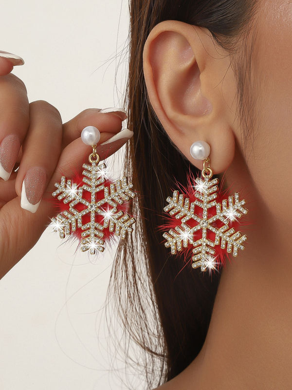 Christmas Fluffy Snowflake Diamond Pearl Earrings