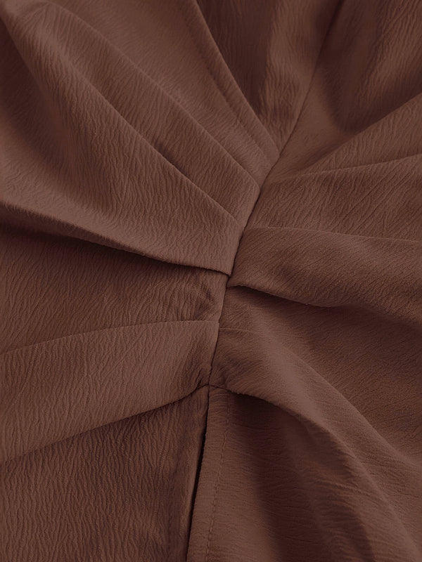 Coffee 1930s Lapel V-Neck Fitted Waist Lantern Sleeve Blouse
