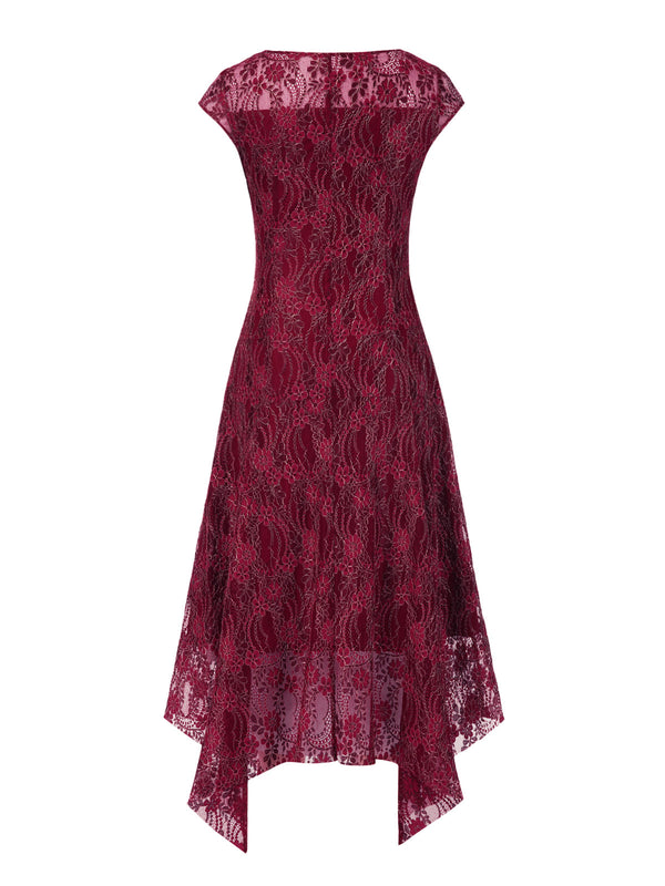 [Pre-Sale] Deep Red 1920s Lace Floral Dress With Necklace | Retro Stage