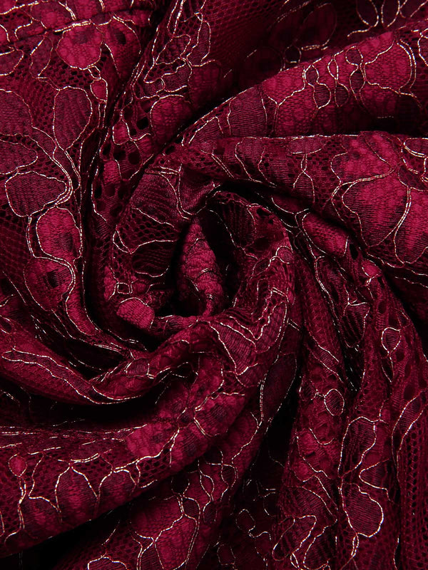 [Pre-Sale] Deep Red 1920s Lace Floral Dress With Necklace