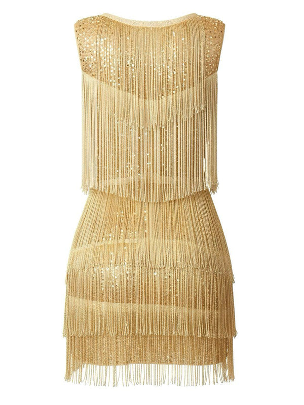 Gold 1920s Fringe Sequin V-neck Mini Dress