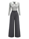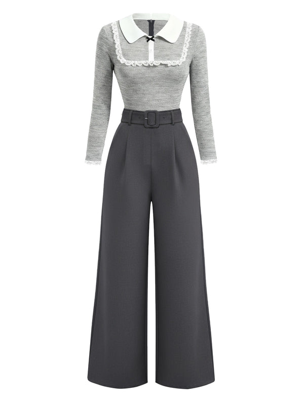[Pre-Sale] Gray 1930s Knitted Patchwork Lace Belted Jumpsuit | Retro Stage