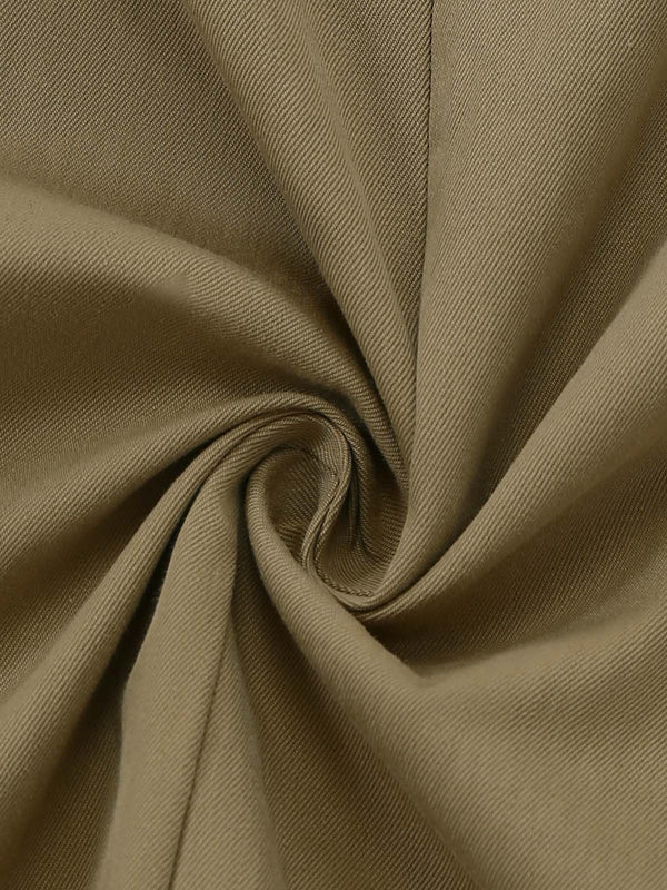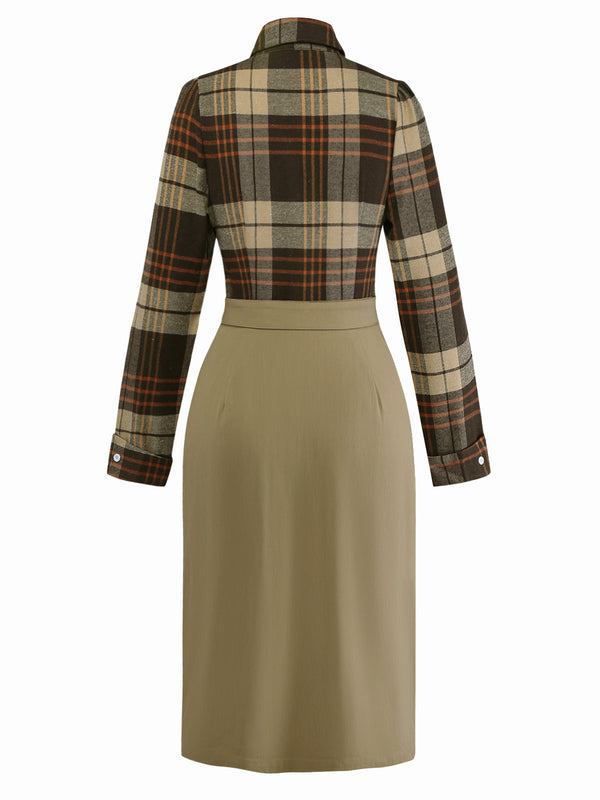 [Pre-Sale] Khaki 1940s Shirt Collar Plaid Belted Dress | Retro Stage