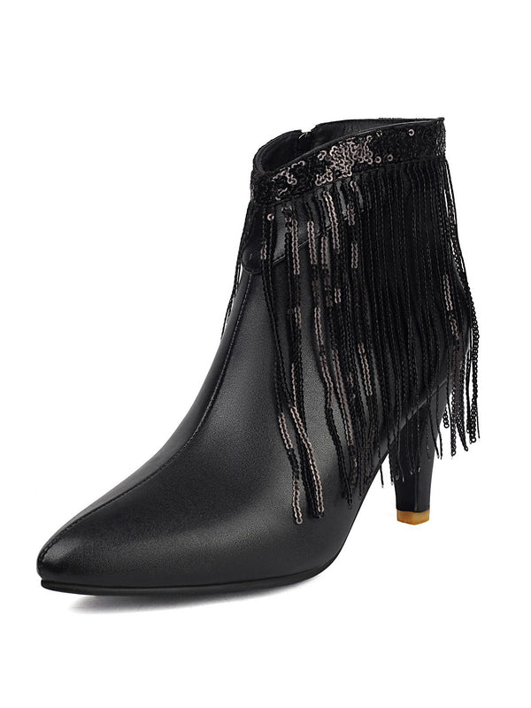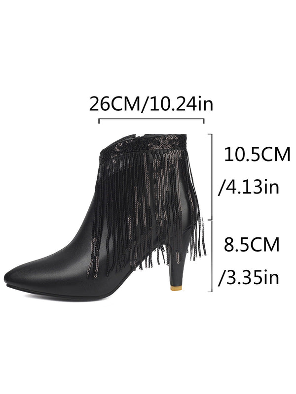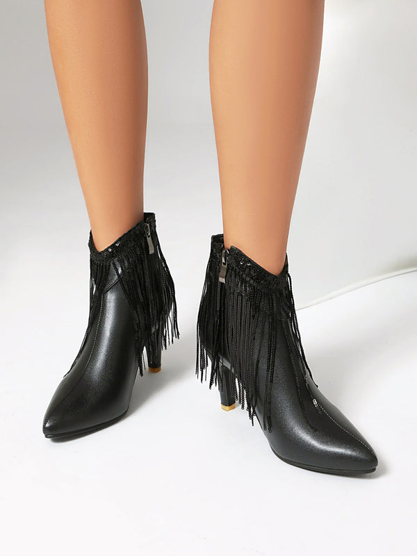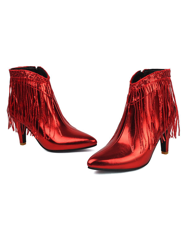Metallic Tassel Pointed Toe Stiletto Chelsea Boots