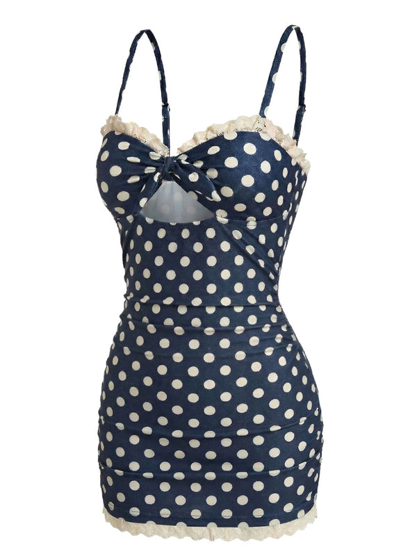 [Pre-Sale] Navy Blue 1930s Polka Dot Ruched Ruffle One-Piece Swimsuit