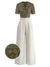 [Pre-Sale] Olive Green 1950s Button-Up Floral Wide-Leg Jumpsuit | Retro Stage