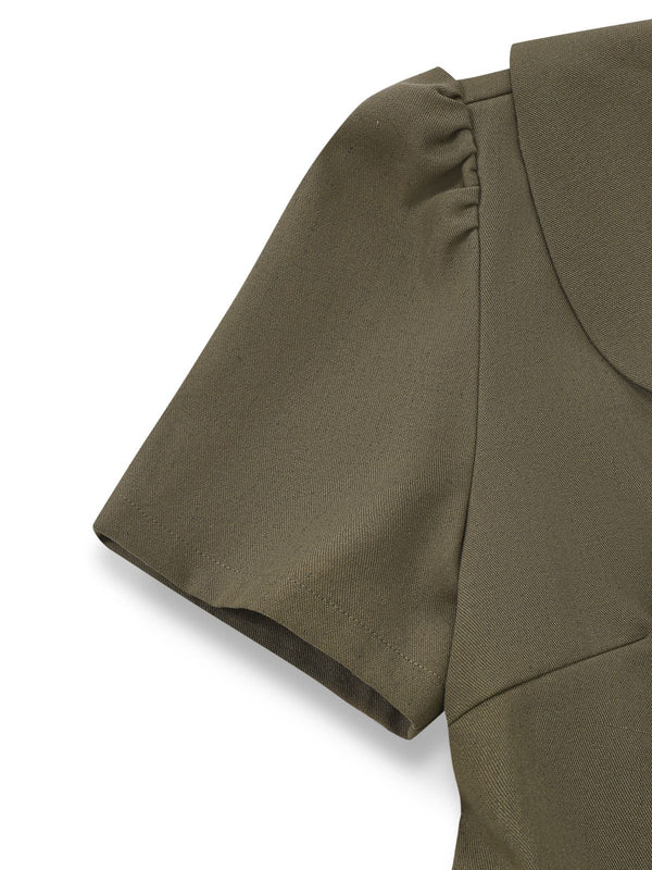 [Pre-Sale] Olive Green 1950s Button-Up Floral Wide-Leg Jumpsuit