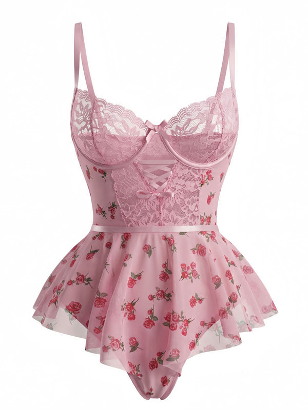 Pink 1930s Slip Roses Bow Lace Sleepwear | Retro Stage