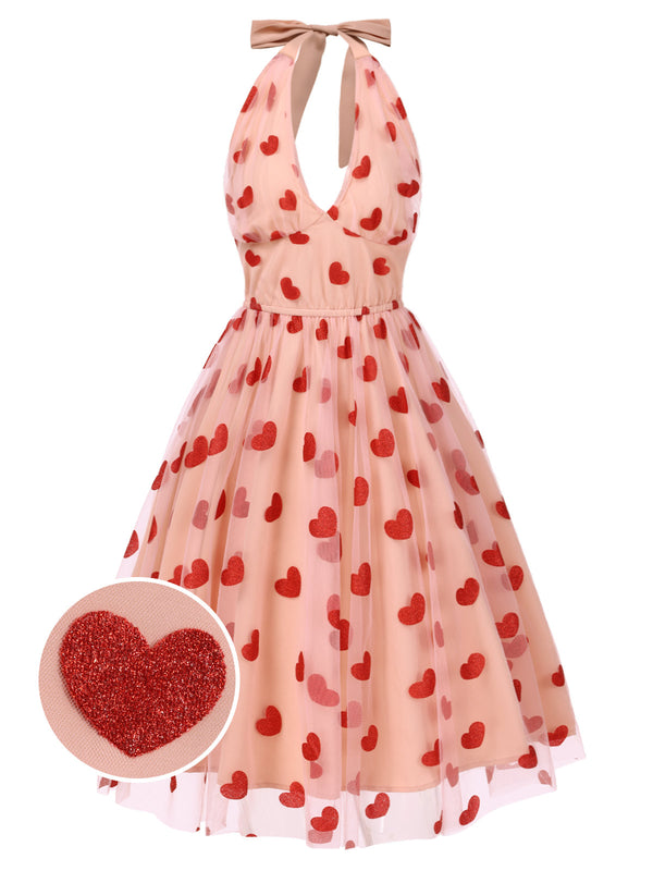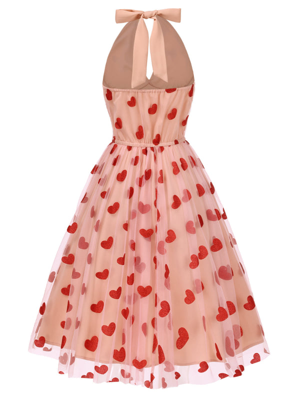 [Pre-Sale] Pink 1950s Halter Heart Mesh Dress | Retro Stage