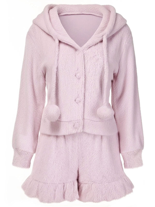 Detail: Flannelette; "Bunny Tail" Removable Pom Pom; Elastic Waist; Ruffled Hem