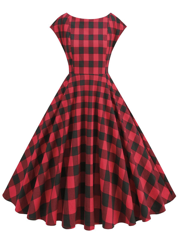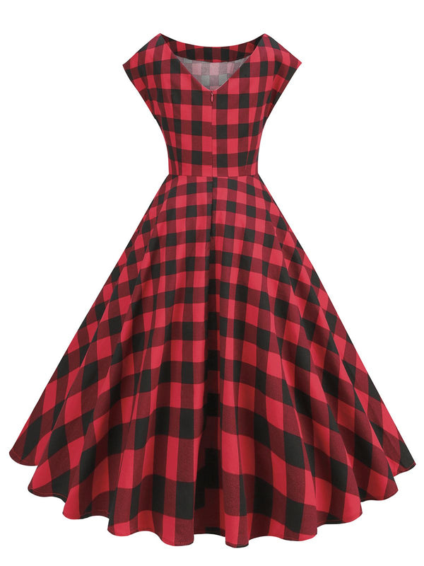 Red 1950s Buffalo Plaids Swing Dress | Retro Stage