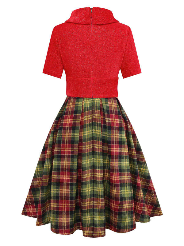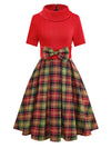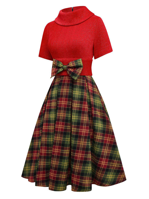[Pre-Sale] Red 1950s Christmas Turtleneck Sparkle Sweater Plaid Dress | Retro Stage