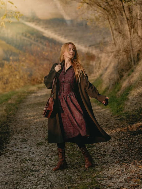 Red 1950s Plaid Lapel Puff Sleeves Cotton Dress | Retro Stage