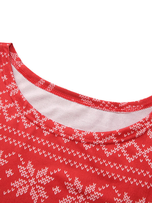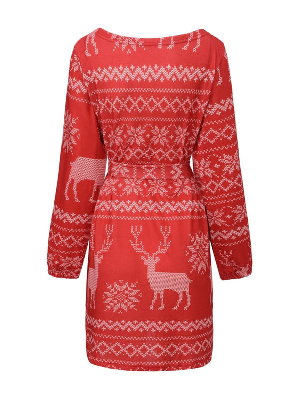 Red 1960s Christmas Reindeer Snowflake Belted Dress