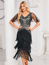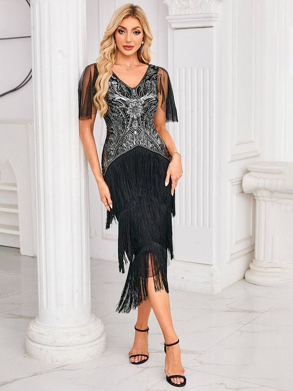 Silver 1920s Sequined Tassel Mesh Patchwork Dress
