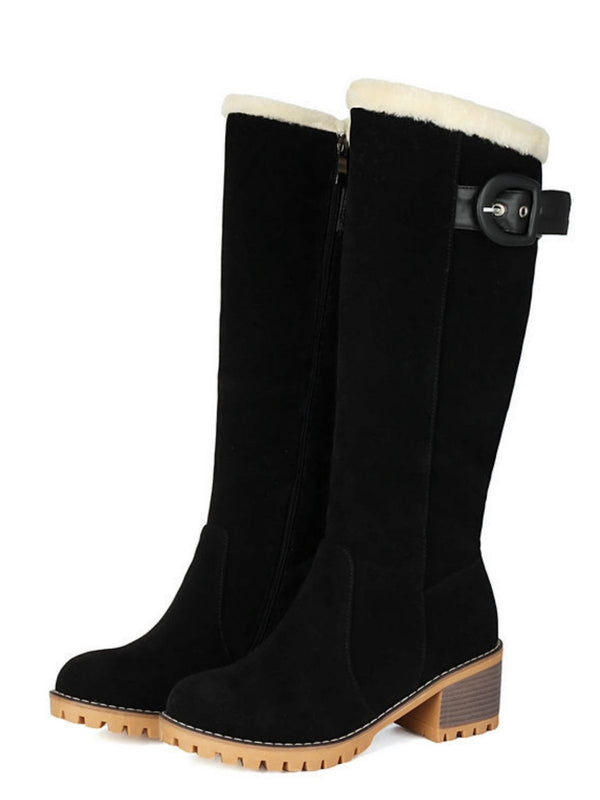 Suede buckle Faux Fur Knee-High Boots | Retro Stage