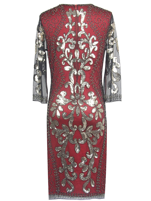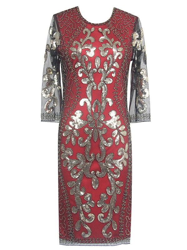 Shimmy some sparkle into your life, dear! With a bit of royalty and aristocratic detail, this dress is fresh from Retro Stage in stunning 1920s design. This dress with a long sleeve comes in a black and red and curve-hugging style that makes it ultra-flattering on any body type. Outfitted with a back zipper to flatter your feminine form, outshine the competition!