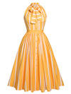 Something wicked this way comes, darlings! Crafted in a fabulous fabric and boasting 1950s styling, this adorable silhouette boasts orange stripes throughout. Turn back your fashion clock to the midsts of the 1950s, where feminine chic reigned supreme, and dresses oozed pure elegance and seduction.