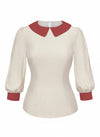 [Pre-Sale] White 1940s Colorblock Peter Pan Collar Blouse | Retro Stage